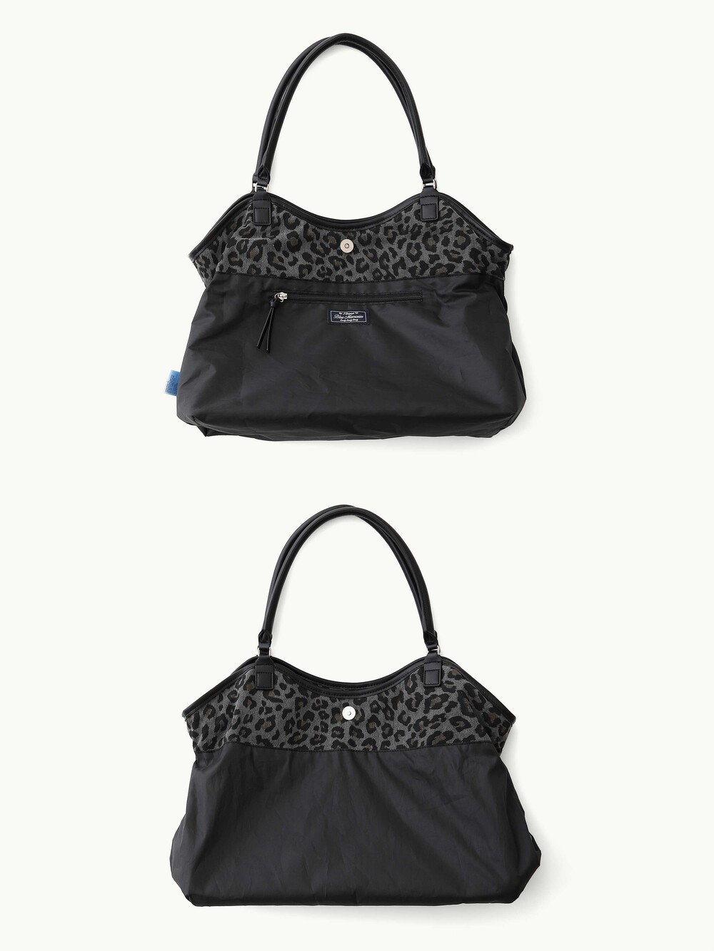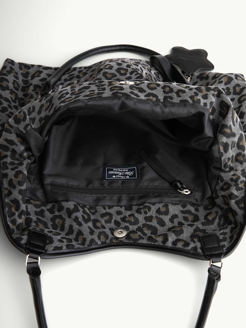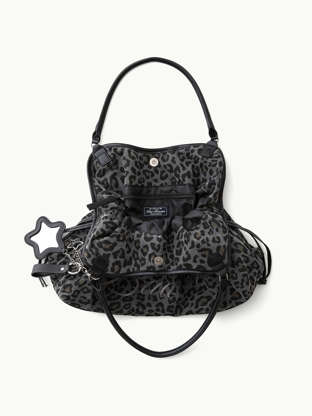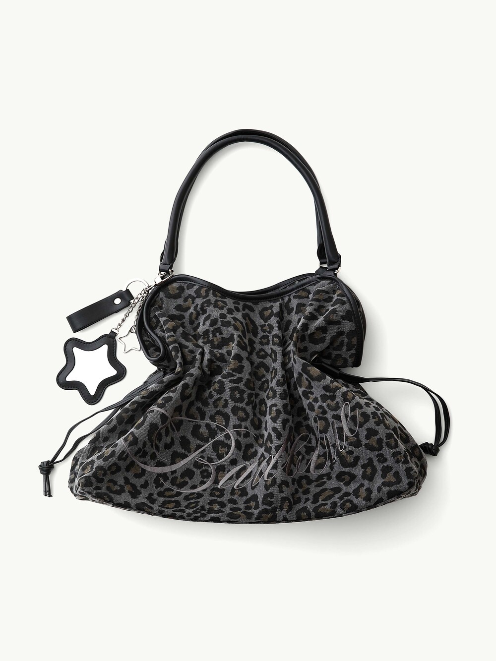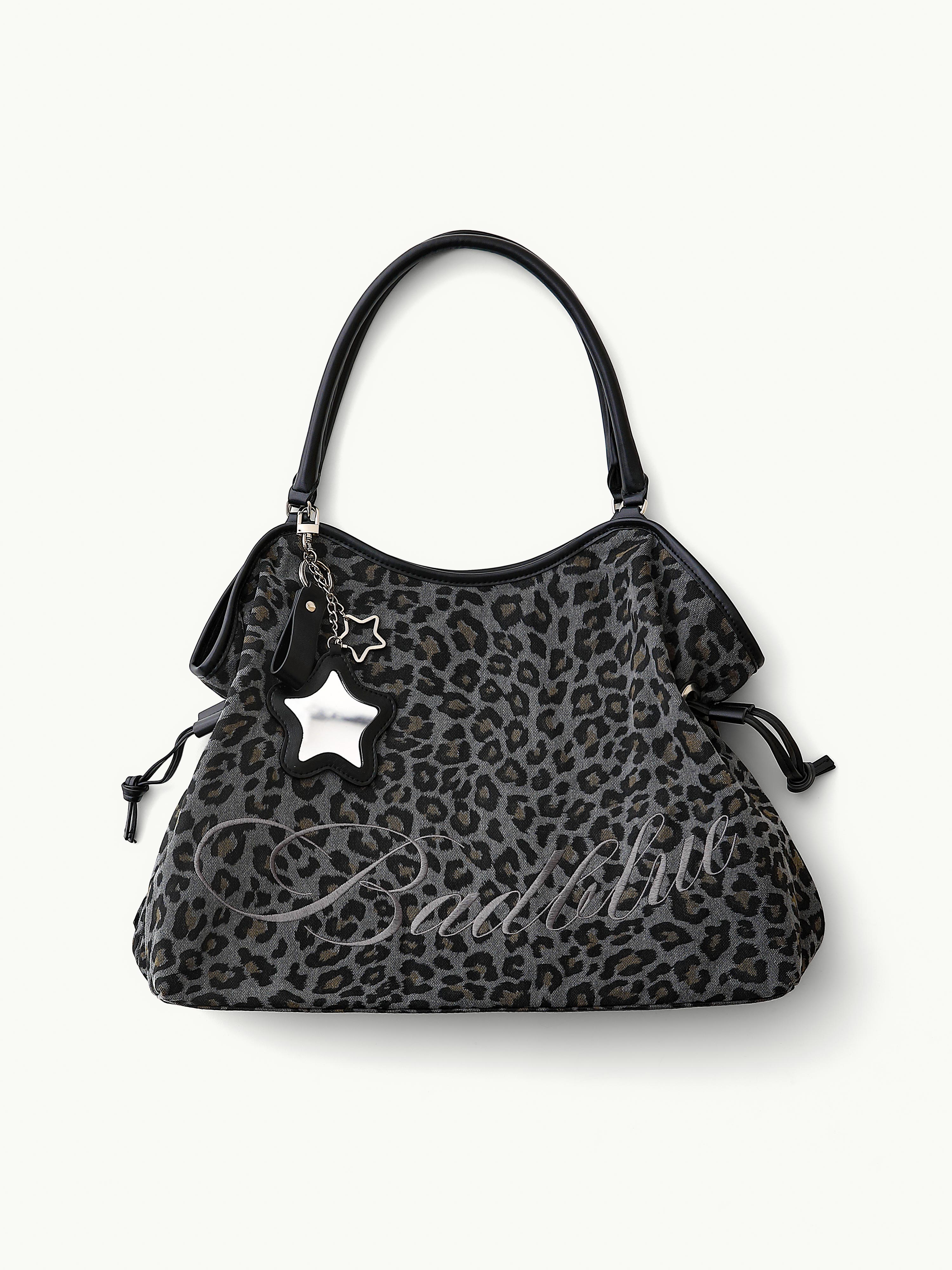 [SIZE & FIT] The Dimsum Bag finished with a leopard print that naturally refreshes simple, everyday looks. Generously sized to fit a laptop, with ample space for daily essentials and a naturally soft, rounded Finished with a water-resistant lining. Includes a bag charm.